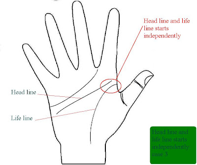 - Or, Head line starts independently and not attached with life line. In this case there is either a narrow or a wide gap between these two lines.